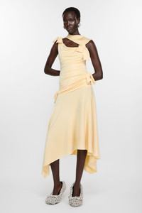 Sleeveless dress adorned with tie-up knots details, crafted from a soft stretch cotton blend. Constructed with asymmetric hemline. Cut to a regular fit a mid length. - Regular fit - Mid length - Asymmetric hem - Knot details - Model is 178 cm / 5'10 and wears a size 36 - Style ID: FN-WN-DRES001475 - Shell: 60% Viscose, 32% Cotton, 8% Elastane, Lining: 74% Nylon, 26% Elastane