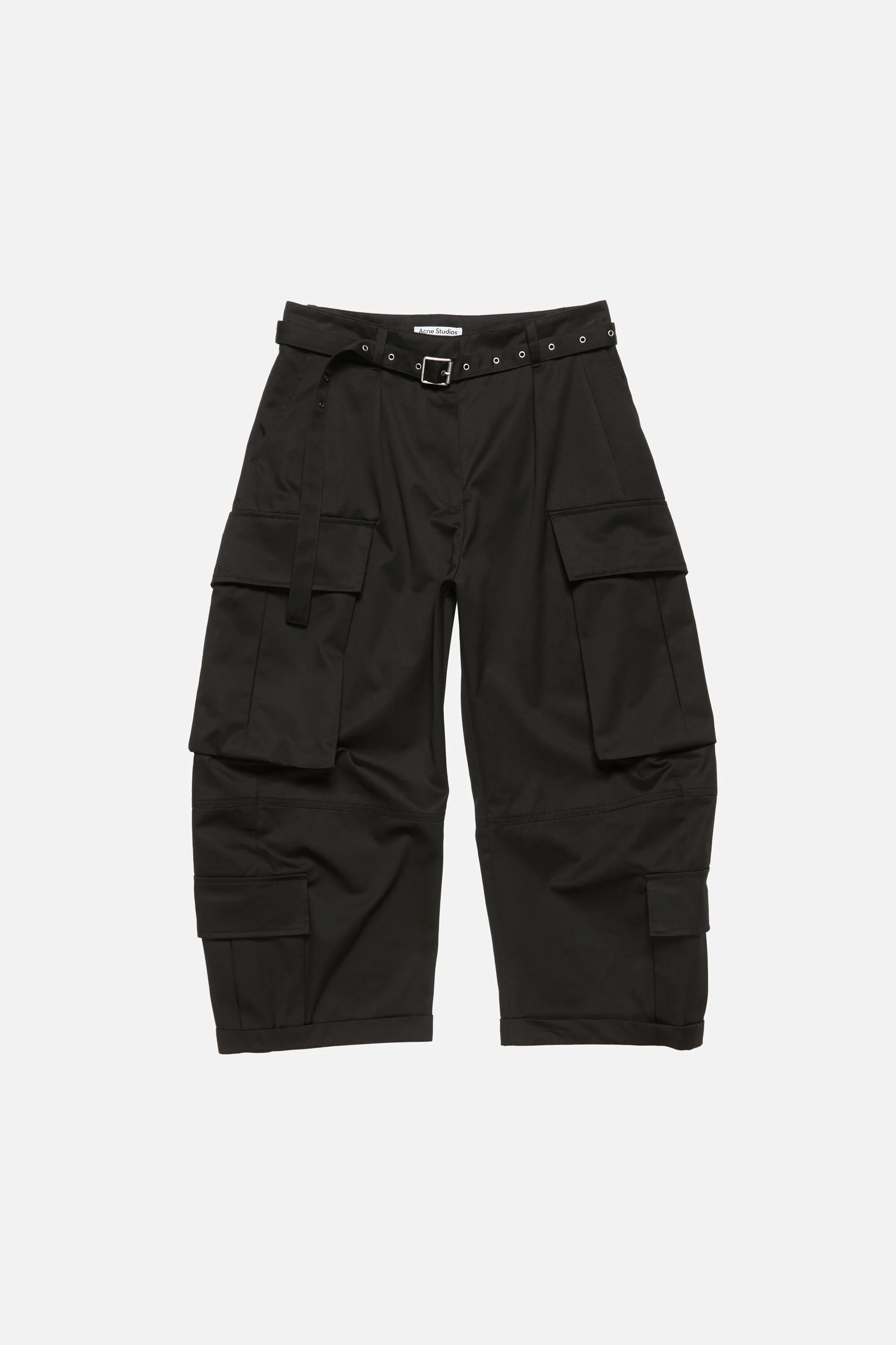 Cargo trousers crafted from lightweight cotton twill and finished with a matching adjustable belt. Designed with side seam pockets, patch pockets with invisible snap buttons, and a folded hem. Cut to a regular fit with a barrel leg, mid waist, and mid-calf length. - Cargo trousers - Regular fit - Barrel leg - Mid waist - Mid-calf length - Matching adjustable belt - Side seam pockets - Patch pockets with invisible snap buttons - Folded hem - Style ID: FN-WN-TROU001578 - Made with organically grown cotton - Shell: 100% Cotton
