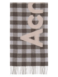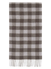 Rectangular knit RWS-certified wool-blend scarf in brown and gray. · Check pattern throughout · Fil coupe logo at face · Fringed detailing at ends · L78" x W14" Supplier color: Brown/Beige