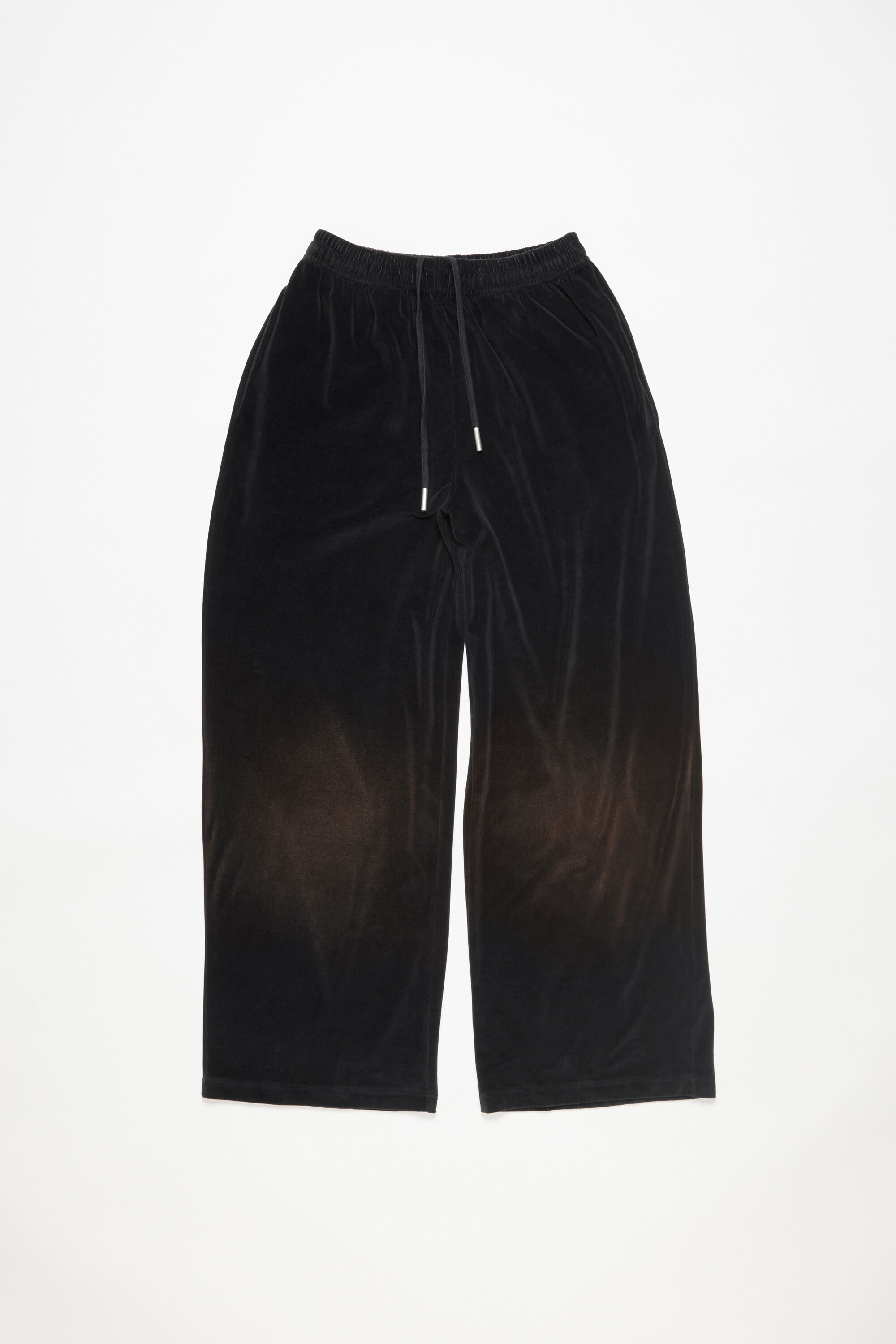 Casual trousers are cut to a fitted unisex with a long length. Crafted from a cotton blend with a velour towelling finish. Detailed with a seasonal fisheye Acne Studios logo on the back and vintage spray details. - Fitted unisex fit - Elasticated waistband with drawstring - Long length - Vintage spray finish - Fisheye Acne Studios logo embossed centre back - Side pockets - Spray detail is unique and may differ slightly from the image - Female model is 178 cm / 5′11 and wears a size XS - Model is 186 cm / 6′2 and wears a size M - Style ID: FN-UX-TROU000019 - Shell: 84% Cotton, 15% Polyester, 1% Elastane