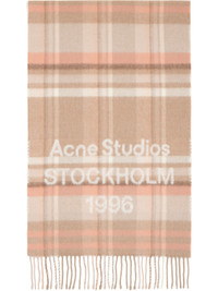 Beige & Pink Wide Check Logo Scarf
