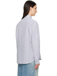 Heavyweight cotton poplin shirt. Stripes throughout. · Spread collar · Button closure · Logo embroidered at chest · Shirttail hem · Adjustable single-button barrel cuffs · Twin pleats at back yoke Supplier color: Navy black/White 100% cotton. Made in Morocco 251129F109001