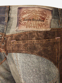 SKU: 761-003861 01 BRAND ID: FN-WN-TROU001527 Wide Jeans Trompe-l'œil Jeans By Acne Studios • Three side pockets and two back pockets • Mid-rise waistband with belt loops • Design with trompe-l'œil print • Loose fit • Made from cotton denim • Wide Jeans • Straight leg • Button closure 100% elastane Italy