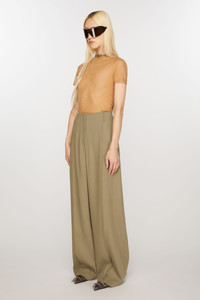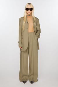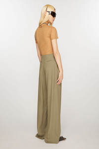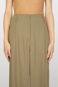 Tailored trousers are cut to a regular fit with a mid waist, straight leg and long length. Crafted from a wool blend, detailed with pressed crease. - Regular fit - Mid waist - Straight leg - Long length - Press crease seams - Slanted front and jet back pockets - Model is 178 cm / 5′10 and wears a size 36 - Style ID: FN-WN-TROU001239 - Shell: 69% Wool, 31% Viscose, Pocket Lining: 100% Cotton