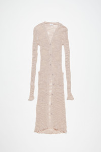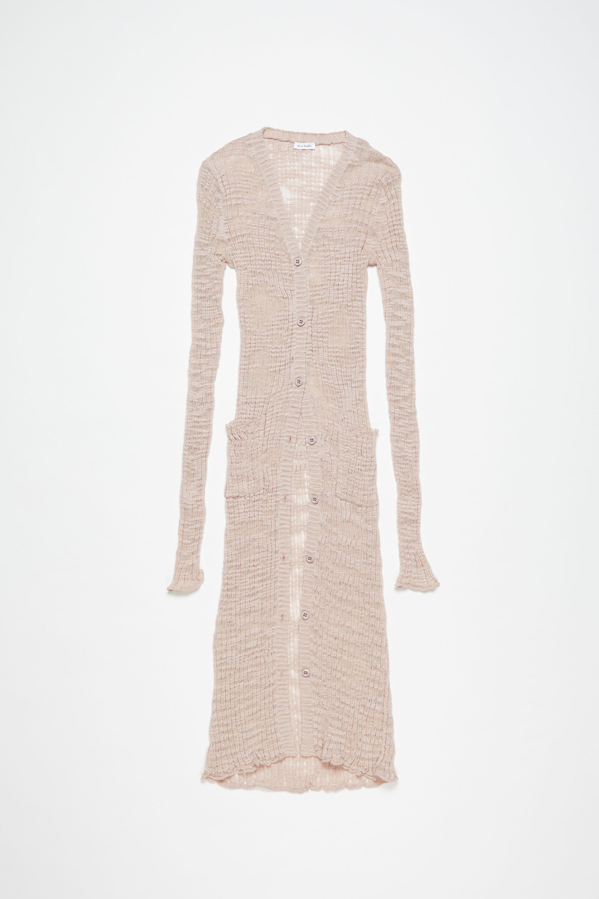 Cardigan is crafted from a linen blend characterised by irregular wide knit and semi-sheer finish. Complete with a button-up closure and front pockets. Cut to a fitted fit and long length. - Fitted fit - V-neckline - Long length - Button-up closure - Front pockets - Model is 177cm/ 5'10 and wears a size S - Style ID: FN-WN-KNIT000584 - Shell: 55% Linen, 45% Polyester