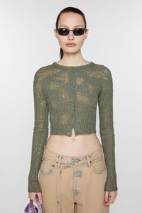 Cardigan is crafted from a wide rib knit made of a linen blend with an irregular texture with a semi-sheer finish. Detailed with a centre front button-up closure, cut to a fitted fit and waist length. - Fitted fit - Waist length - Button-up closure - Wide rib with a semi-sheer finish - Model is 180 cm / 5′11 and wears a size S - Style ID: FN-WN-KNIT000585 - Shell: 55% Linen, 45% Polyester