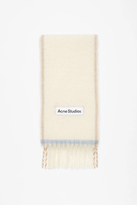 Fringe scarf is crafted from a rich wool mohair blend, detailed with an Acne Studios embroidered logo label and weaved contrast framing. - Embroidered logo label - Weaved contrast frame - Measurements: 28 cm; 250 cm - Fringe measurements: 12 cm approx. - Made in Italy - Style ID: FN-UX-SCAR000328 - Shell: 33% Alpaca, 25% Wool, 22% Nylon, 20% Mohair