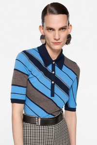 Wool polo knit - Multi blue