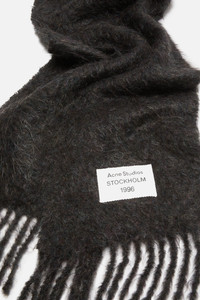 Scarf crafted from a mohair blend with a fuzzy texture for a soft, warm feel. Finished with fringed ends and an Acne Studios logo tab. - Acne Studios logo tab - Fringed ends - Measurements: 27 cm; 270 cm - Style ID: FN-UX-SCAR000446 - Certified to the Responsible Wool Standard (RWS) and Responsible Mohair Standard (RMS) by Control Union, license number CU-1024001 - Made in Italy - Shell: 21% Wool, 8% Nylon, 71% Mohair