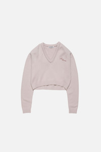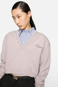 V-neck sweater crafted from carefully selected high-quality yak yarn, featuring seasonal embroidery on the chest. Finished with ribbed neckline, cuffs, and hem. Cut to a boxy silhouette. - V-neck sweater - Boxy fit - Seasonal embroidery - Ribbed neckline, cuffs - Removable shoulder pads - Model is 180 cm / 5'9 and wears a size S - Style ID: FN-WN-KNIT000912 - Certified to the Responsible Wool Standard (RWS) by Control Union, license number CU-1024001 - Shell: 50% Yak wool, 50% Wool