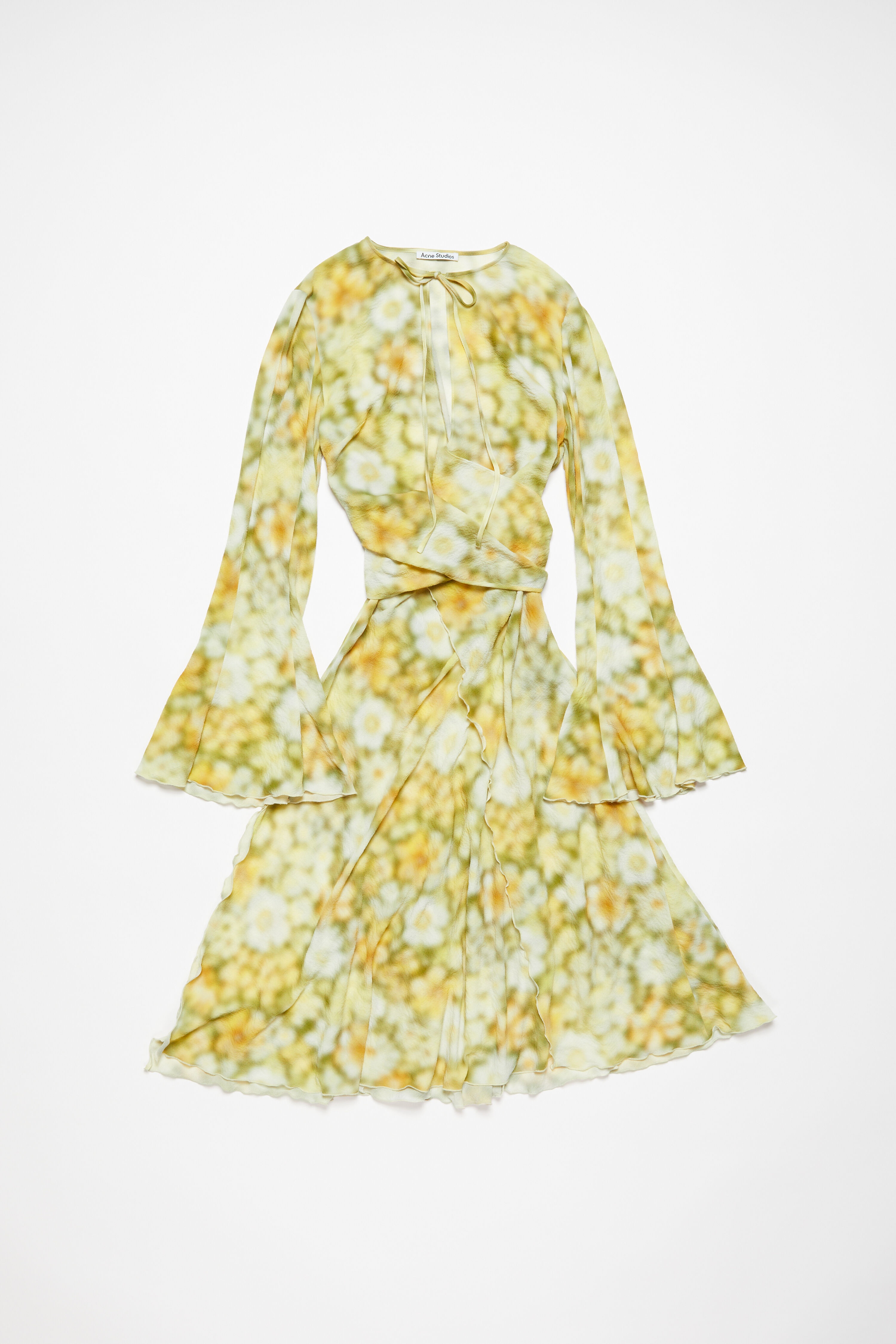 Long sleeve dress is cut to a regular fit with long sleeves and mid-calf length. Complete with a wrap construction, strap closure at the waist and neckline. Adorned with a seasonal blurred flower print and a front slit. - Regular fit - Long sleeve - Calf length with irregular hemline - Wrap construction - Tie-up closure at the waist and neckline - Model is 174 cm / 5′9 and wears a size 36 - Style ID: FN-WN-DRES001160 - Shell: 100% Polyester