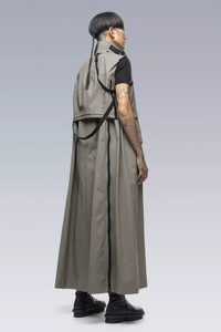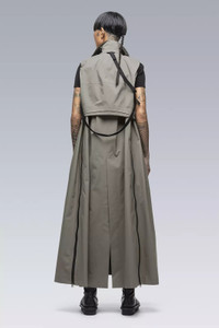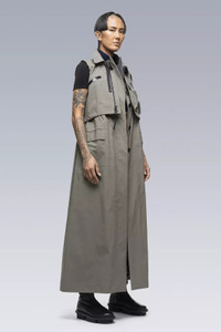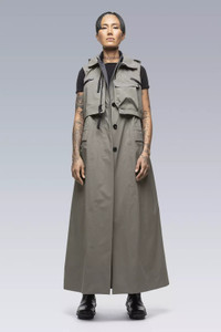 J6010 is sacai's aesthetic reframing of the Acronym J1W-GTPL design**. Following sacai methodology, it preserves hallmark attributes while fundamentally altering volume, silhouette, and typology. A trench coat and dress hybrid, it features a complex multilayer design. A vest-like top layer rests above a sleeveless coat-like under layer which descends to full dress length. Made in Japan by sacai. Shown in size: 1/S (Fa', 180 cm) [ Fits: STRAIGHT ] **sacai man 2022 Spring & Summer, women's 2022 Pre Spring collection Riffing on a theme of bonding, both as a metaphor for unity and as a technique for joining together two materials - two ideas that have been at the heart of sacai since the beginning. The collection by founder and designer, Chitose Abe, is a study on sealing together two apparently disparate notions to make a new form, bringing together characteristics born of different, sometimes opposing, origins. The ultimate expression of the idea comes courtesy of a collaboration with ACRONYM®, combining the designer Errolson Hugh's signature technical details with sacai fabrics and shapes for men and women, and, for the first time for ACRONYM®, a dress silhouette. Hugh says, 'Having known Chitose, and of course sacai, for many years, this collaboration is the ideal kind of crosspollination. And as I believe you can see from the results, it's a true blend of the philosophies of both brands, where the sum is greater than the parts.' Fabric technology Main Fabric 72% PA, 28% ePTFE Secondary Fabric 100% PA Inner Collar 90% Wool, 10% PA Sizing Size S M L XL 1 2 3 4 1/2 Chest 53 55 57 59 Length 139 143 147 151 Shoulders 11 11,5 12 12,5 All measurements in centimeters. Weight: 1100g (size M, including removable parts) Actual product may differ from images.