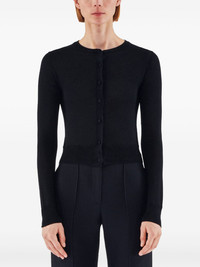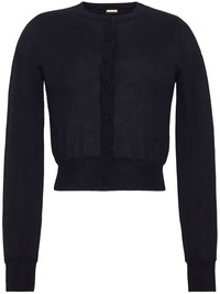 fine-knit cardigan Highlights - Black - Front button fastening - Crew neck - Ribbed cuffs and hem - Cropped Imported Composition Cashmere 70%, Silk 30% Washing instructions Dry Clean Only