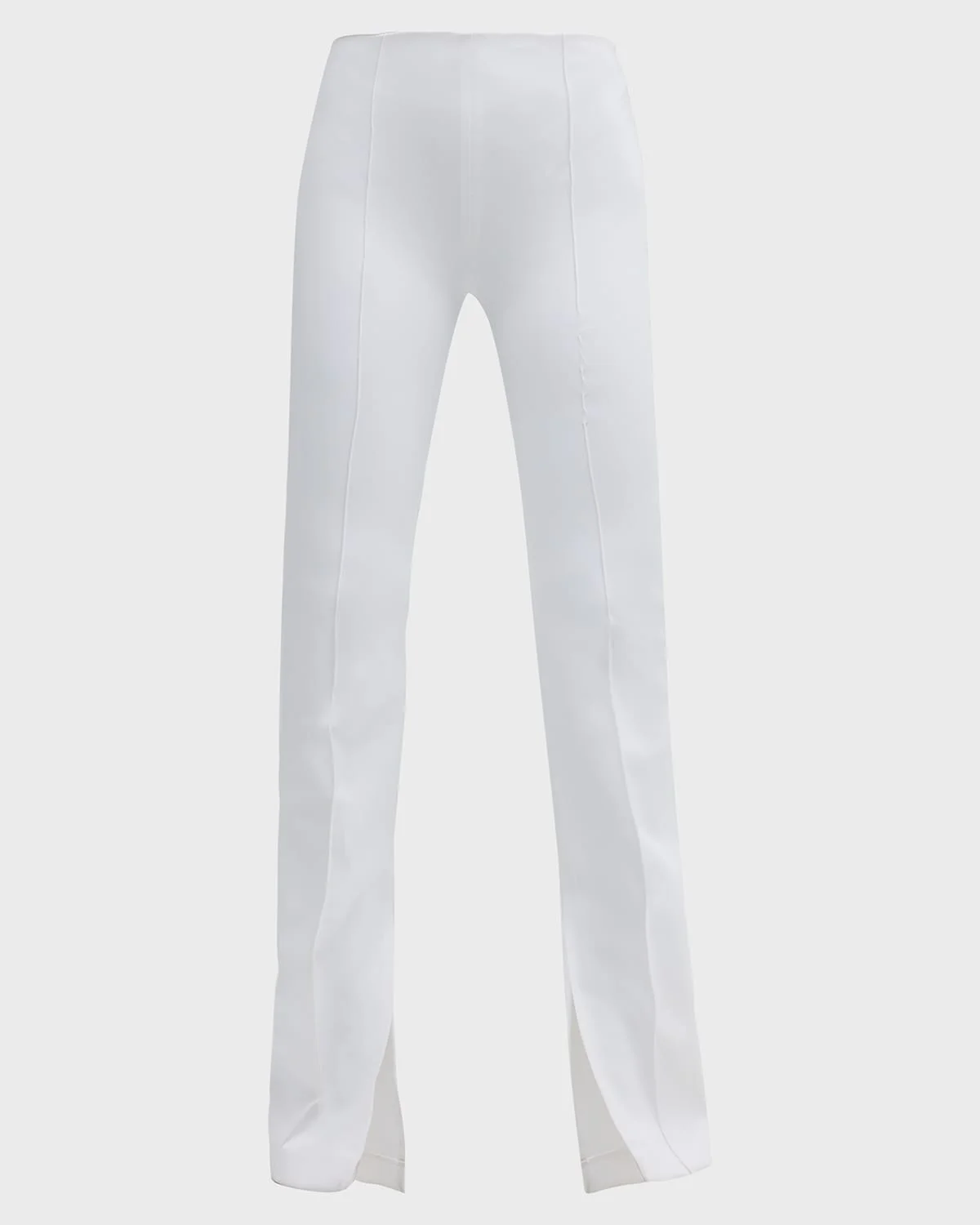Adam Lippes bonded neoprene pants Mid rise Fitted through hip; flared from knee Slit cuffs Side zip Nylon/spandex Made in USA