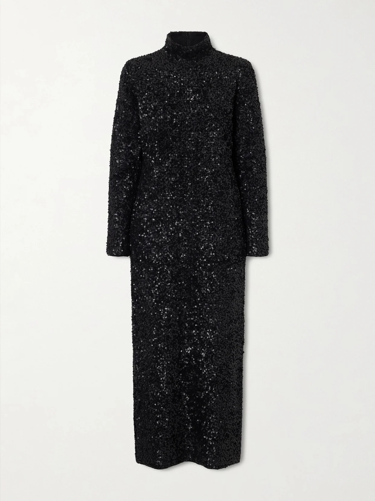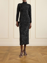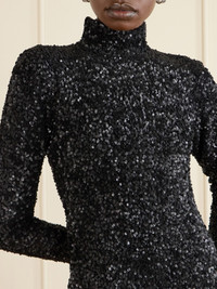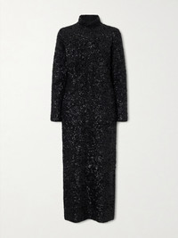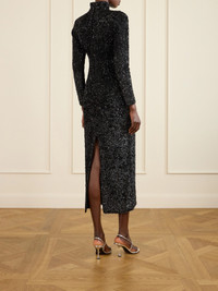 Adam Lippes' 'Samadhi' dress evokes starry nights with its dark shimmer. Covered with glistening sequins, it's finely knitted and has viscose in the blend to ensure it feels soft, smooth and light to wear.
