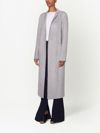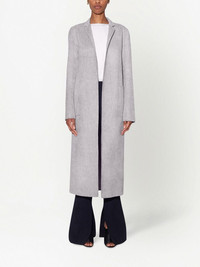 Vanessa open-front cashmere coat heather grey cashmere notched lapels open front two side patch pockets long sleeves central rear vent straight hem mid-calf length Made in United States Composition Cashmere 100% Washing instructions Dry Clean Only