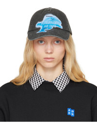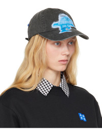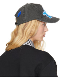 Denim cap in black. · Fading throughout · Logo graphic and text printed at face · Curved brim · Frayed flag at back face · Leather pin-buckle fastening · Mesh browband · Partial broadcloth lining · Logo-engraved antiqued silver-tone hardware Supplier color: Black Body: 100% cotton. Lining: 80% polyester, 20% cotton. Made in South Korea 251039F016000