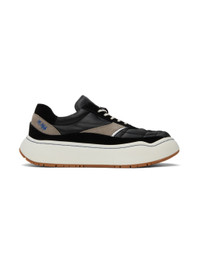 Low-top quilted grained leather and suede sneakers in black. · Topstitching at vamp and welt · Lace-up closure · Padded tongue and collar · Silver-tone leather trim at sides · Logo embroidered at outer side · Foam rubber platform midsole · Treaded rubber sole · Platform: H2" Supplier color: Noir Upper: leather. Sole: rubber. Made in South Korea 241039F128006