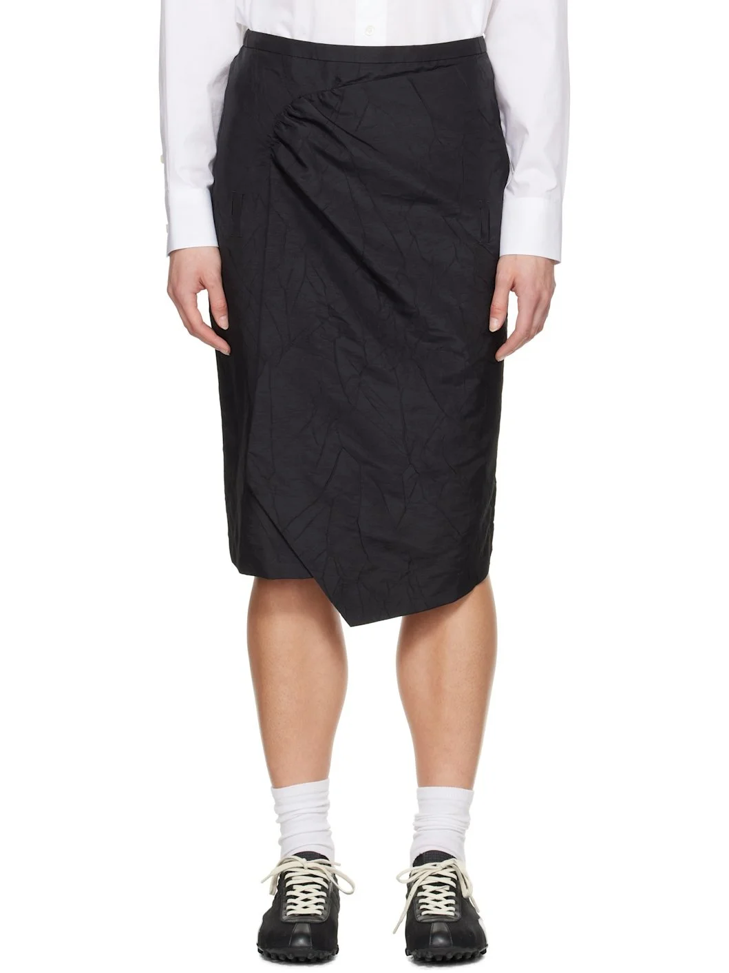 Nylon-blend taffeta midi skirt. Pintucks throughout. · Mid-rise · Wrap construction · Ruching and cutout at front · Two-pocket styling · Zip closure and logo flag at back · Full satin lining Supplier color: Black Body: 55% nylon, 45% polyester. Lining: 55% polyester, 45% nylon. Made in South Korea 251039F090003