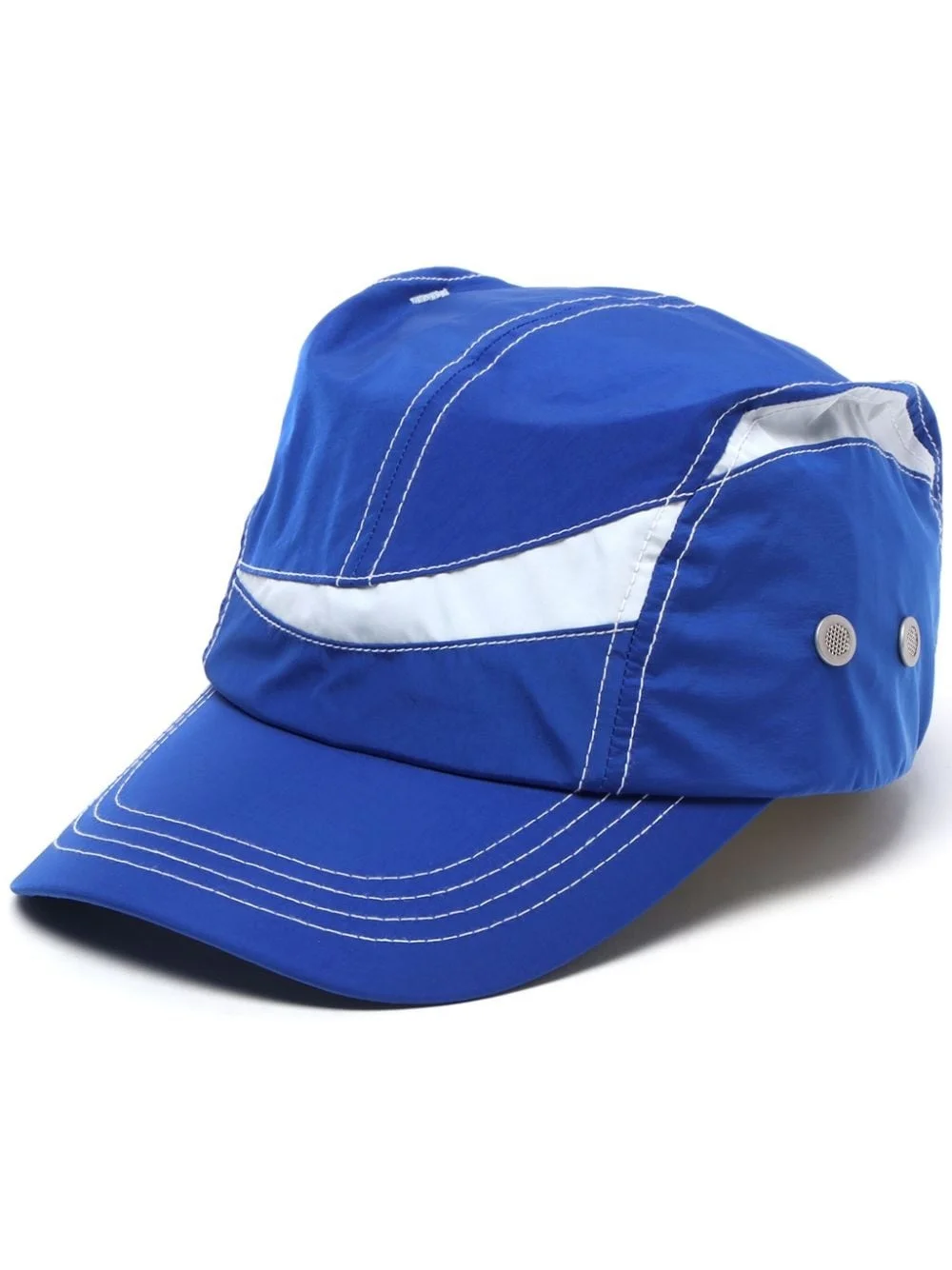 contrasting panelled cap Highlights - Cobalt blue/white - Panelled design - Contrast stitching - Applique logo - Eyelet detailing - Curved peak - Curved wide brim - Adjustable strap to the rear Imported Composition Nylon 100%