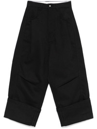 cropped trousers Highlights - Black - Cotton - Textured finish - Cropped leg - Front button and zip fastening - Belt loops - Pleat detailing - Two side inset pockets - Two rear welt pockets - Turn-up cuffs - When buying this unisex item, keep in mind that it is graded in standard men's sizing. Imported Composition Cotton 100%