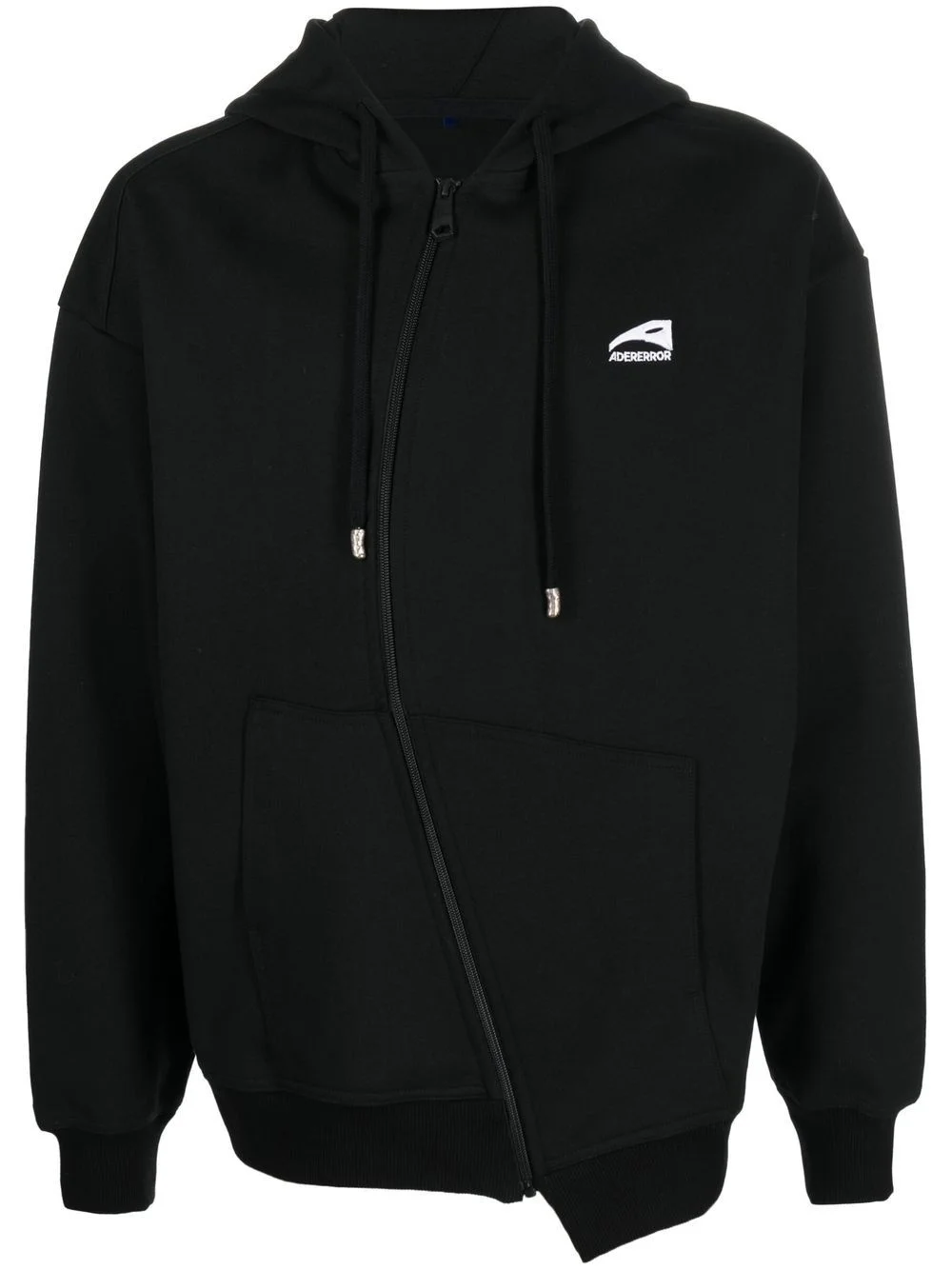 curved-zip long-sleeve hoodie Highlights - Black - Cotton blend - Jersey fleece - Ribbed trim - Asymmetric design - Logo patch to the rear - Embroidered logo at the chest - Slouchy drawstring hood - Off-centre front zip fastening - Drop shoulder - Long sleeves - Asymmetric hem - Two front pouch pockets - When buying this unisex item, keep in mind that it is graded in standard men's sizing Imported Composition Cotton 77%, Polyester 23% SIZE & FIT Model measurements Height 5 ft 11 in(1.8 m) Bust/Chest 31.49 in(80 cm) Hips 36.41 in(92.5 cm) Waist 25.59 in(65 cm) Washing instructions Hand Wash