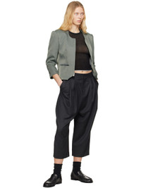 Crinkled plain-woven nylon-blend blazer. · Raw edge at round neck · Zip closure · Hook-eye fastening at chest · Darts at front and back · Welt pockets · Cutout at front hem · Gathering at padded shoulders · Frayed flag at back shoulder · Welt pocket at interior · Full satin lining Supplier color: Charcoal Body: 55% nylon, 45% polyester. Lining: 55% polyester, 45% rayon. Made in South Korea 251039F057002
