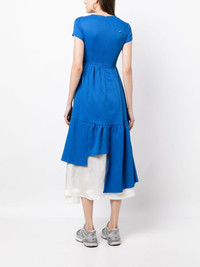 layered asymmetric midi dress Highlights - Blue/white - Textured finish - Layered design - Pleat detailing - V-neck - Rear zip fastening - Short sleeves - Fitted waistline - A-line skirt - Asymmetric hem - Mid-length Imported Composition Body: Polyester 100% Lining: Acetate 100% SIZE & FIT Model measurements Height 5 ft 10 in(1.78 m) Bust/Chest 30.31 in(77 cm) Hips 34.64 in(88 cm) Waist 24.01 in(61 cm) FittingInformation Designed for a close fit at the chest and waist with a loose fit at the hip The internal slip sits just away from the body, offering a close yet comfortable fit Made from a midweight non-stretch fabric This piece fits true to size – those with broad shoulders may wish to take one size up