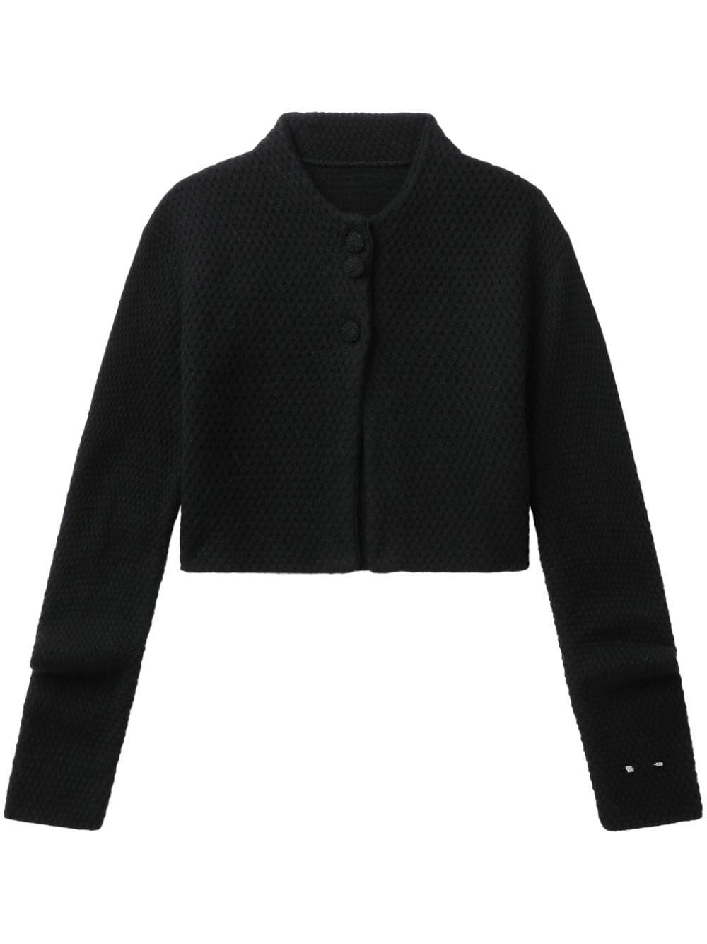 logo-applique cardigan Highlights - Black - Wool blend - 3d-knit construction - Front button fastening - Crew neck - Long sleeves - Applique logo - Straight hem - Cropped Imported Composition Wool 80%, Nylon 20%