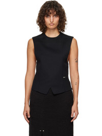 Wool serge top. · Round neck · Hand-stitched logo plaque at front · Notch at front hem · Concealed zip closure at side seam and shoulder · Fixed hardware and logo flag at back · Cinch strap at back · Full logo-woven satin lining Supplier color: Noir Body: 100% wool. Lining: 55% polyester, 45% viscose. Made in South Korea 242039F111001