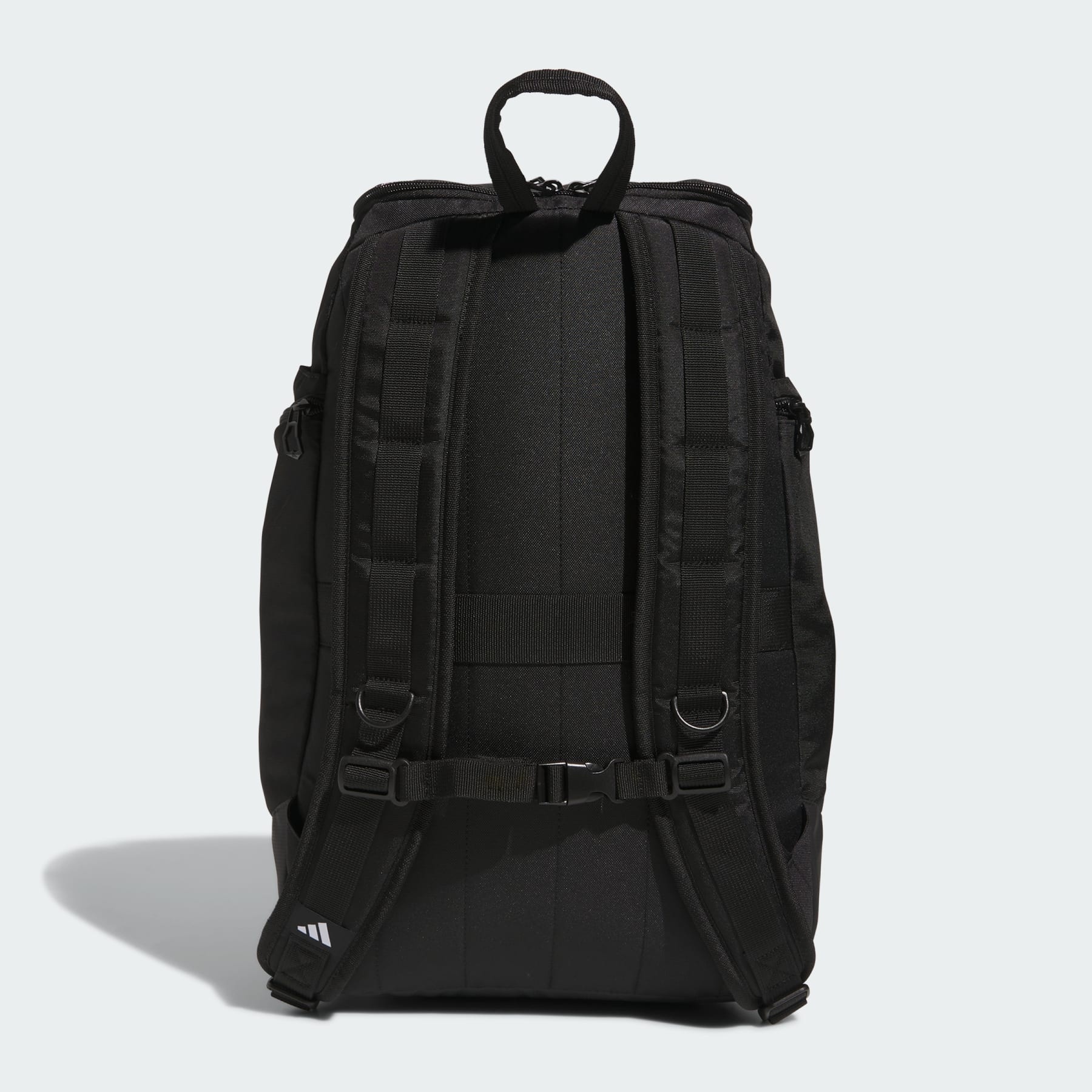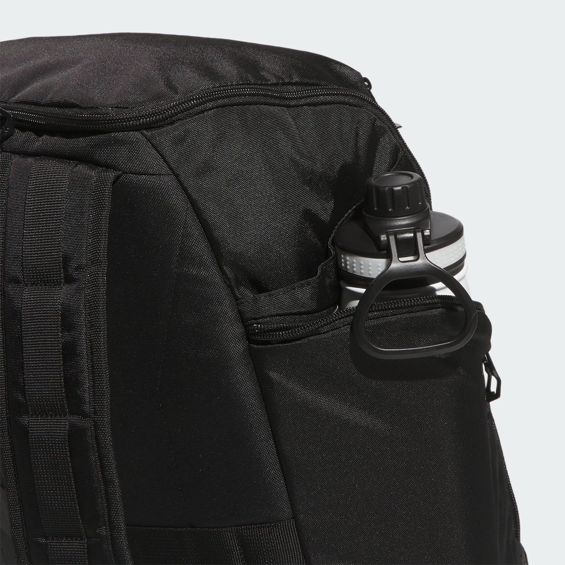 A classic backpack for easy carry. Game day or practice, you'll be able to carry all your gear in this adidas backpack. Keep your wet and dirty things separate from everything else with a ventilated zipper pocket. Carry it with the adjustable shoulder straps or use the trolley strap to attach it to your wheeled luggage. Details - Water-resistant base material - Zip pocket with ventilation - Side pockets - Trolley strap - Padded compartment securely stores up to a 15" laptop - Lifetime warranty - Imported - Product code: IR0734 - Product color: Black