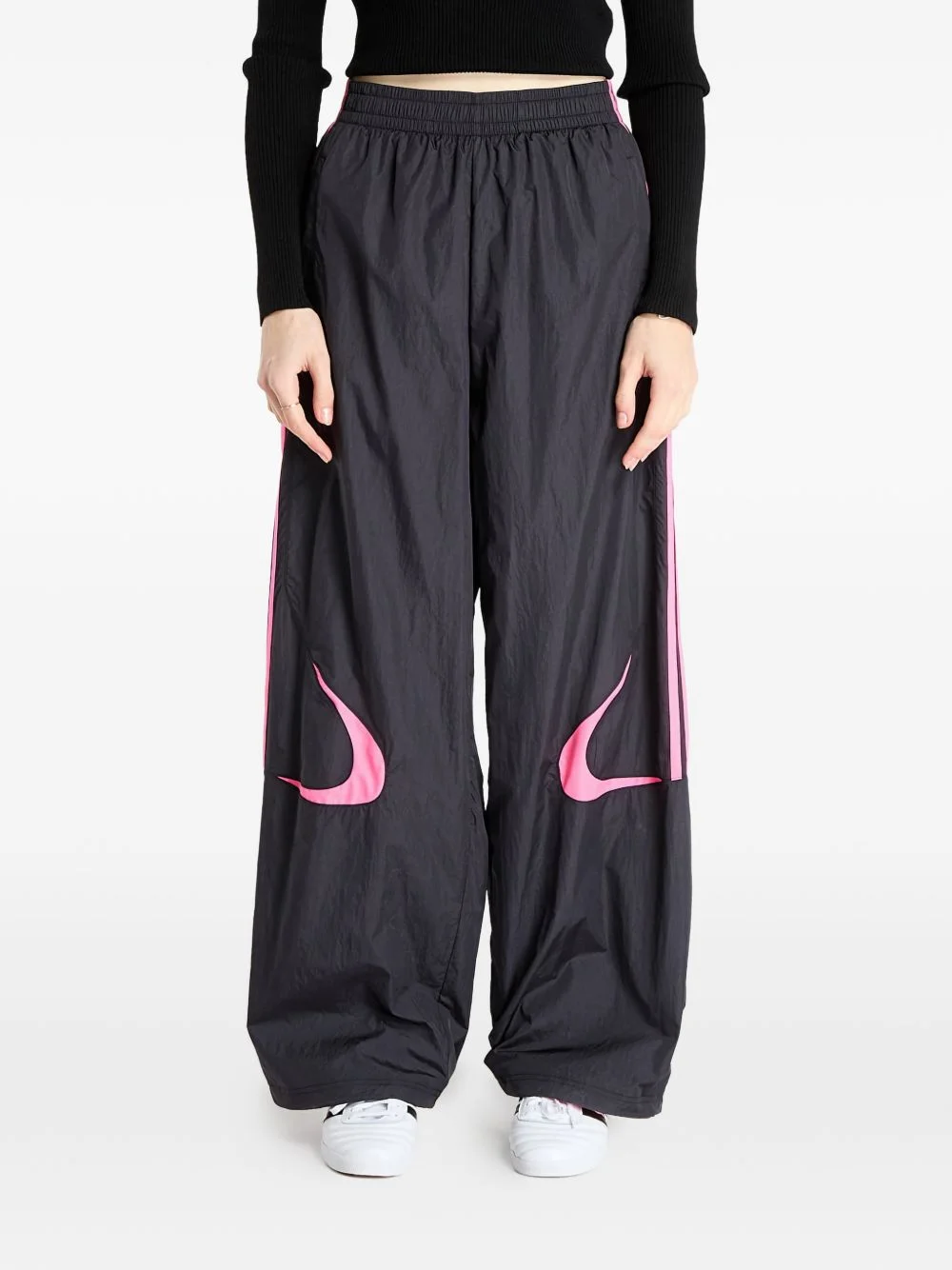 Adiclor oversized stripe trousers Highlights - Black - Side stripe detail - Oversized - Logo detail - Elasticated waistband - Wide leg Imported Composition Polyester 100% Washing instructions Read Manufacturer Guidelines