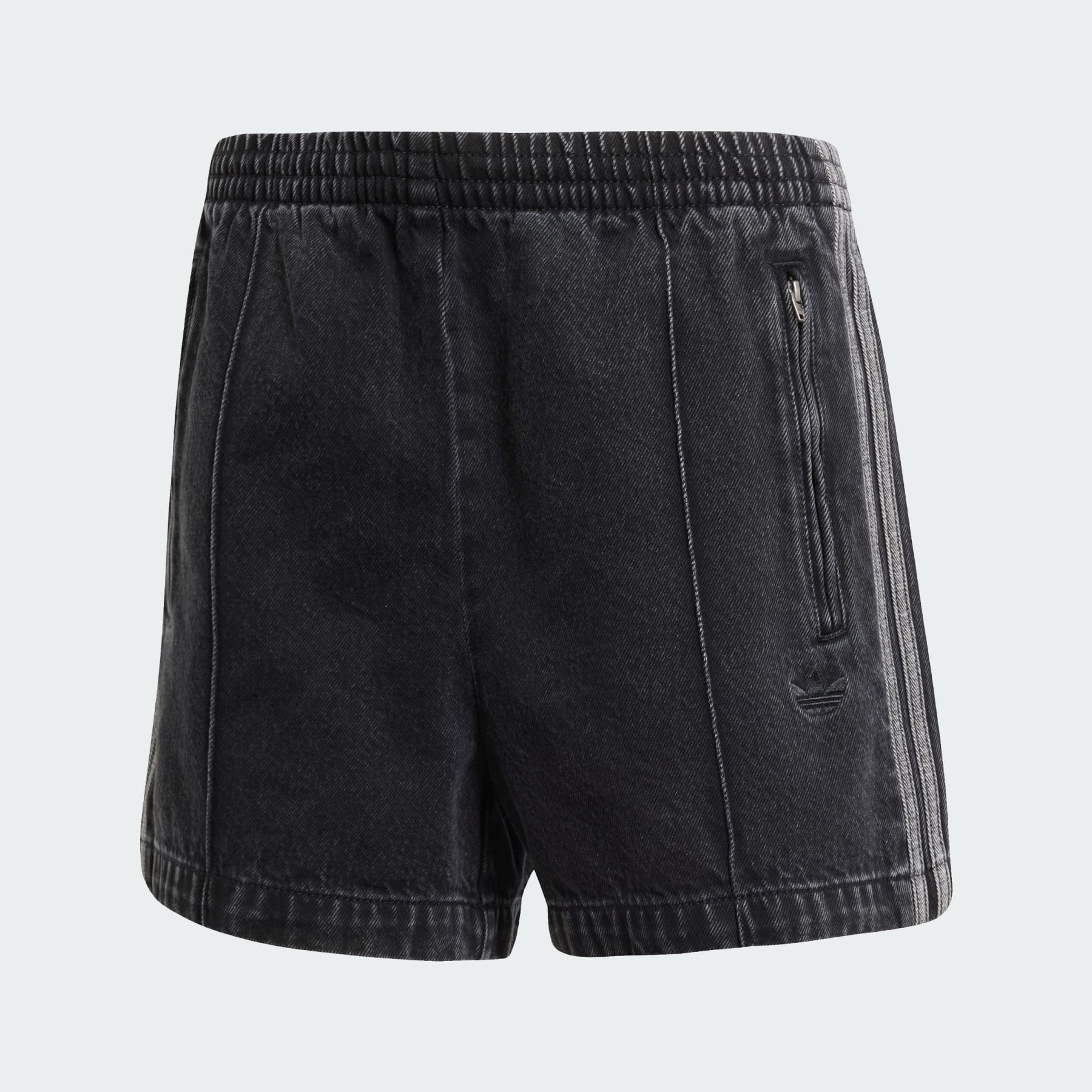 Denim shorts inspired by adidas track style. The adidas Firebird track suit is a classic that's been reinvented time and time again. The iconic look takes on a new life with these denim shorts. They're loose and casual, with the signature 3-Stripes running down the sides. Zip pockets keep your essentials secure so you can focus on the day ahead. Details - Loose fit - Drawcord on elastic waist - 100% cotton - Side zip pockets - Imported - Product code: JD3107 - Product color: True Black Denim