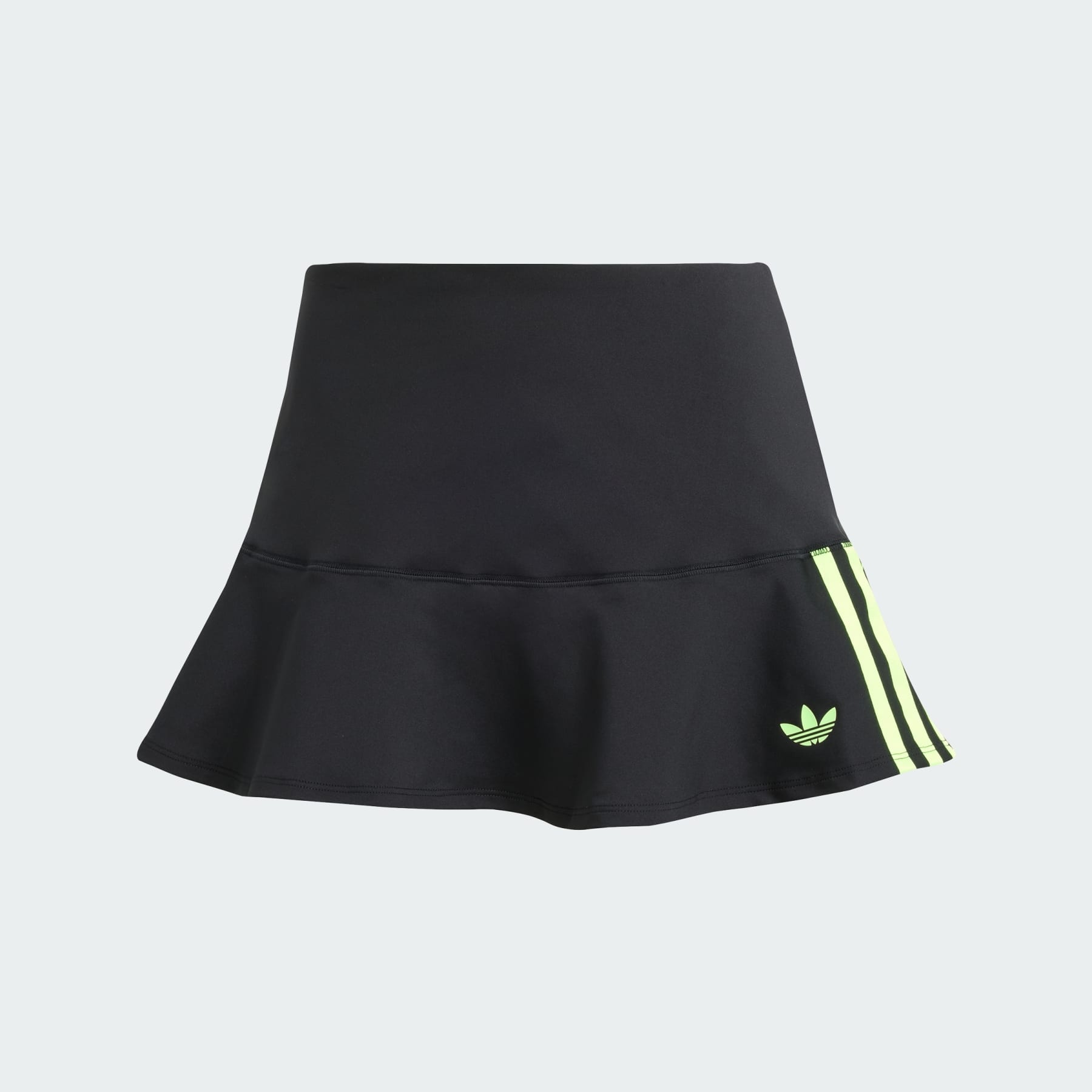A stretchy mini skirt with a twirly hem. This mini skirt from adidas is made to move. The soft interlock fabric feels smooth and comfortable, whether you're running errands or out for the night. The 3-Stripes on the sides give it that signature sporty look, and the slim fit flatters your figure. Pair it with a loose tee for an easy daytime outfit or dress it up with a cropped jacket for an evening out. Details - Slim fit - Wide, stretchy waistband - 79% polyester (recycled), 21% elastane - Imported - Product code: JW2647 - Product color: Black