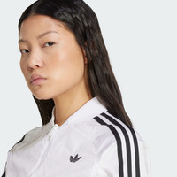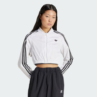 A cropped Y2K-inspired track top made with recycled materials. Channel the '00s in this cropped adidas track top. The crinkle fabric and cut lines take inspiration from vintage soccer shirts. With a slim fit and a mix of matte and shiny finishes, this top is all about sporty style. Pair it with high-waisted jeans or joggers and your favorite sneakers for a look that's as bold as it is retro. This product is made with 100% recycled materials. By reusing materials that have already been created, we help to reduce waste and our reliance on finite resources and reduce the footprint of the products we make. Details - Slim fit - Full zip with ribbed bomber collar - 100% polyamide (recycled) - Elastic cuffs and hem - Cropped length - Imported - Product code: JD0265 - Product color: White
