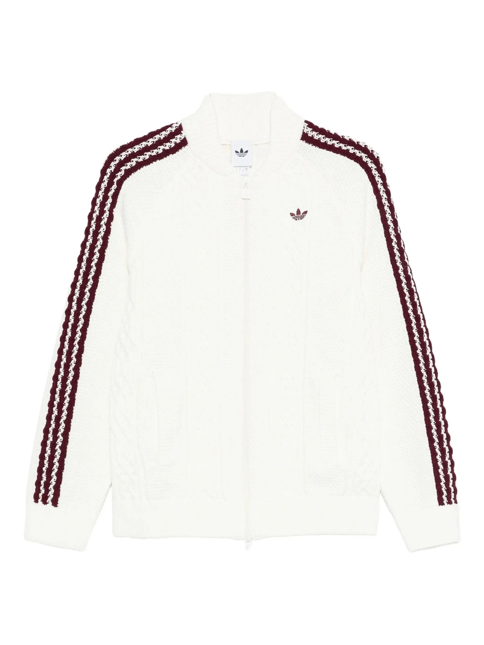 white three-stripe detail cable knit zip fastening logo detail ribbed hem - Color: WHITE - Made in: China - Designer Style ID: KS7804 Composition and care Recycled Polyester: 100.0%