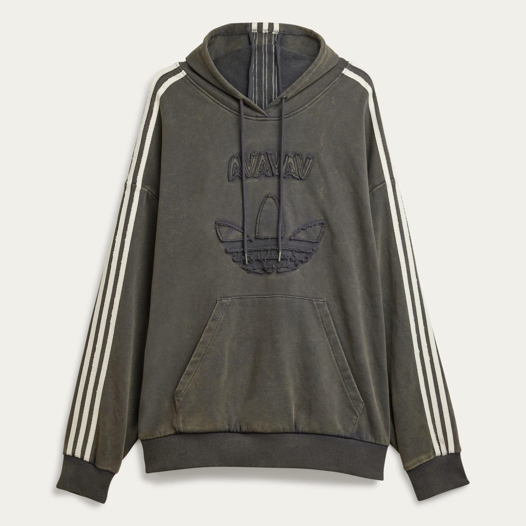 A loose, faded hoodie in collaboration with Avavav. This adidas by Avavav hoodie is based on Avavav's iconic shoulderless silhouette, refreshed by borrowing elements from the adidas archives. It's crafted from distressed French terry material with a washed look, which gets emphasized further through the distressed branding execution — creating an air of casual luxury and vintage appeal. Details - Loose fit - Drawcord-adjustable hood - 100% cotton - Kangaroo pocket - Ribbed cuffs and hem - Imported - Product code: JP4849 - Product color: Carbon