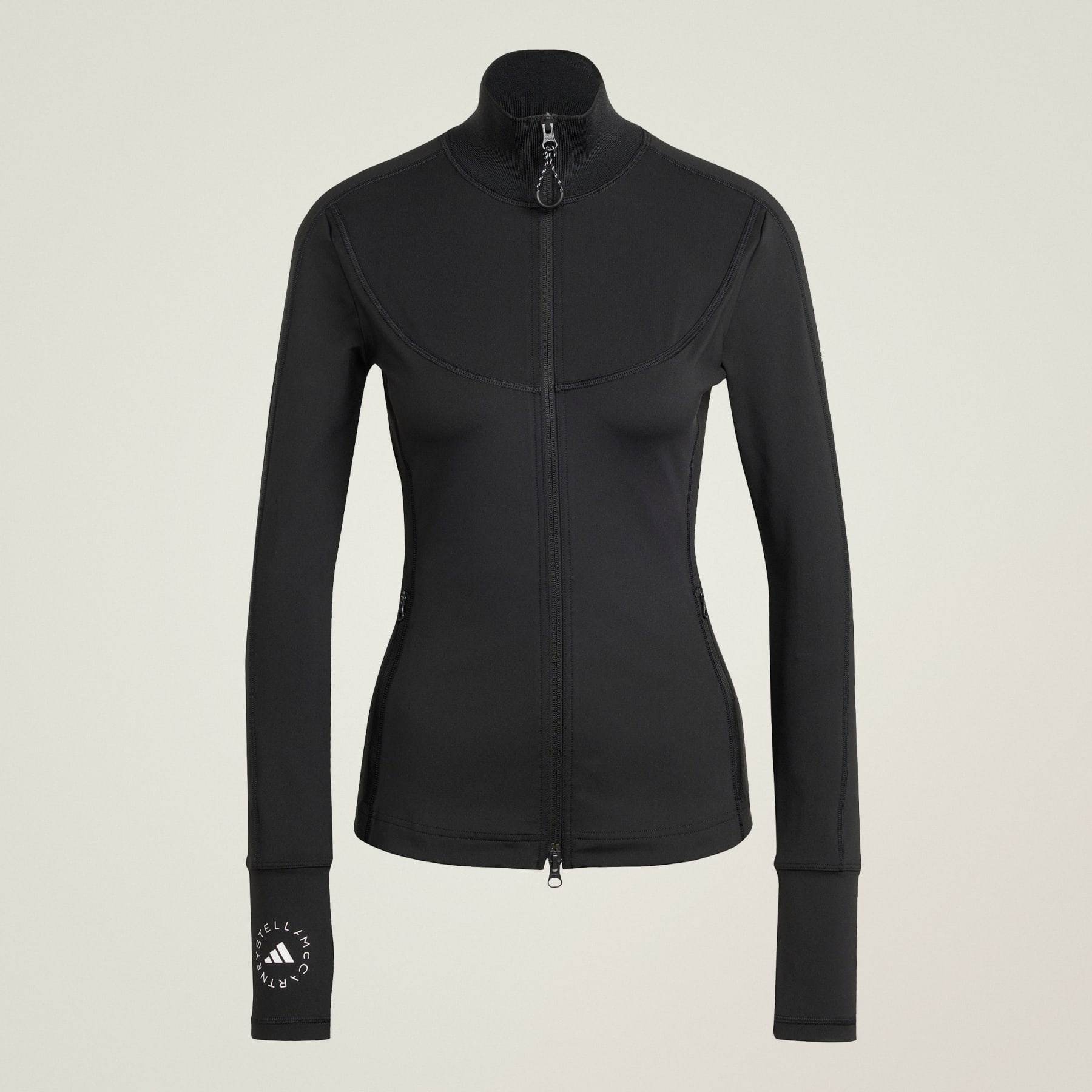 An adidas by Stella McCartney jacket made with recycled materials. This adidas by Stella McCartney jacket is the perfect midlayer for nature hikes and cool-weather workouts. It keeps you dry with moisture-absorbing AEOREADY and comes with laser-cut perforations for ventilation. Wear it solo, or pair it with a puffer vest on colder days. The smooth, stretchy fabric is cut for a slim fit that makes it easy to layer. Thumbhole sleeves help keep hands warm. This product is made with 100% recycled materials. By reusing materials that have already been created, we help to reduce waste and our reliance on finite resources and reduce the footprint of the products we make. Details - Slim fit - Two-way full zip with stand-up collar - 79% polyester (recycled), 21% elastane (recycled) - AEROREADY - Laser-cut perforations - Thumbholes on cuffs - adidas by Stella McCartney logo - Imported - Product code: JF3794 - Product color: Black