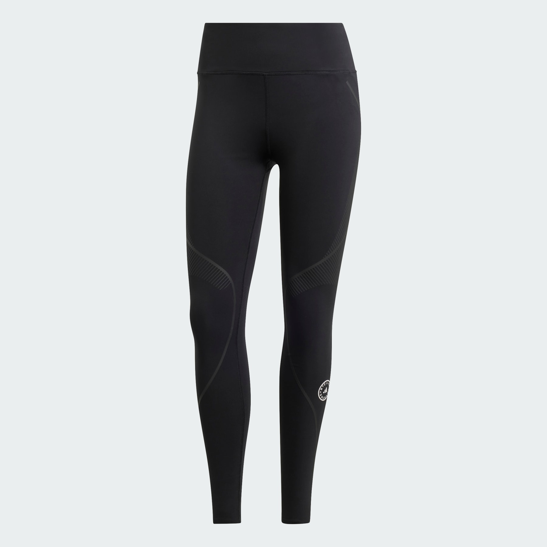 High-performance leggings for logging miles. Chase every opportunity to improve performance with these adidas by Stella McCartney running leggings. They're designed for speed and comfort, letting you focus on what's ahead: beating your personal best. Chevron lines along the leg add striking detail and energy while a drawcord adjusts the waist to find just the right fit. A back zip pocket carries keys or cards so you can head out for miles worry-free. Stay comfortable thanks to HEAT.RDY technology that keeps you cool as body temperature builds. Details - Tight fit - Drawcord on elastic waist - 79% polyester (recycled), 21% elastane (recycled) - Lined gusset - Back zip pocket - Mid rise - adidas by Stella McCartney logo - Made with at least 70% recycled materials - Imported - Product code: IQ4512 - Product color: Core Black