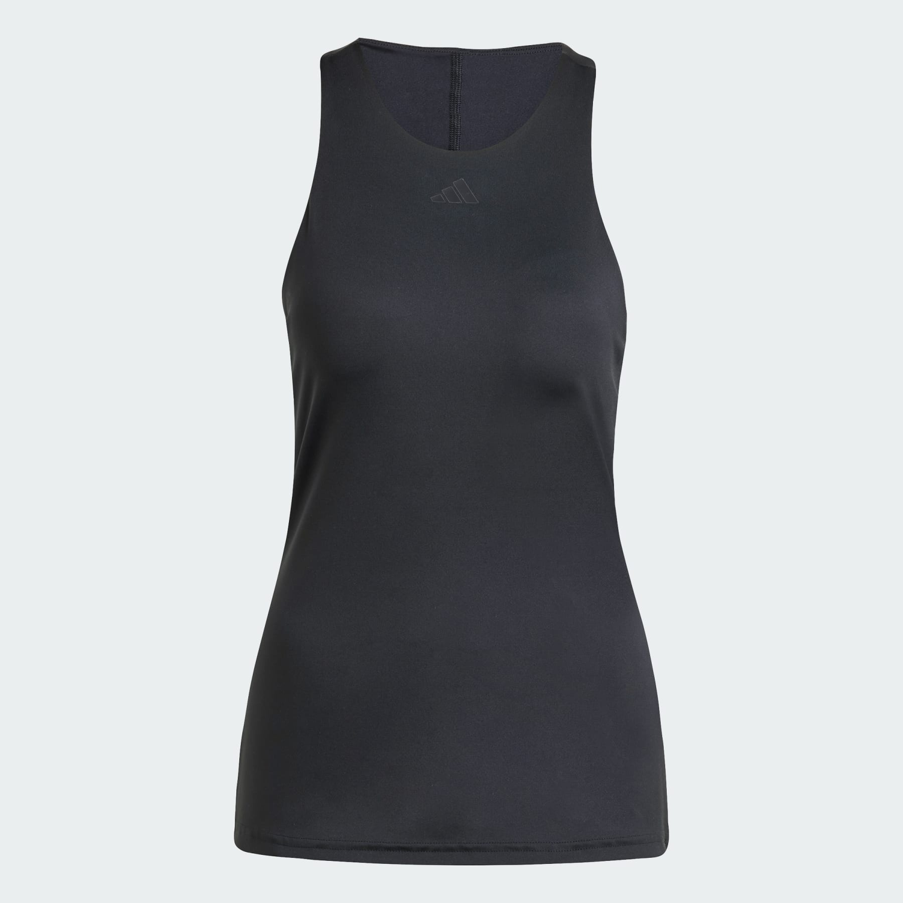A slim-fitting tank top with CLIMACOOL to keep you cool, dry and ready. Take to the court with confidence on the sunniest days. Part of the adidas Gameset collection, this Y-tank top has a slim, streamlined fit for lightning tennis. CLIMACOOL wicks and disperses sweat for cool, dry and distraction-free performance. Stretchy interlock fabric and a shoulder-freeing Y-strap mean you can call on every shot in your arsenal. CLIMACOOL helps you manage sweat with materials that wick and manage sweat quickly. Its fast-dry fibers give you a fresh-skin feel. This product is made with at least 70% recycled materials. By reusing materials that have already been created, we help to reduce waste and our reliance on finite resources and reduce the footprint of the products we make. Details - Slim fit - Round neck - 79% polyester (recycled), 21% elastane - CLIMACOOL - Racerback - Mesh back panel - Integrated, reinforced bra - Imported - Product code: JG3640 - Product color: Black