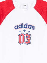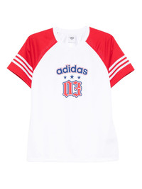 logo-print T-shirt Highlights - White/red - Crew neck - 3-stripes logo - Short sleeves - Straight hem Imported Composition Polyester 100% Washing instructions Read Manufacturer Guidelines