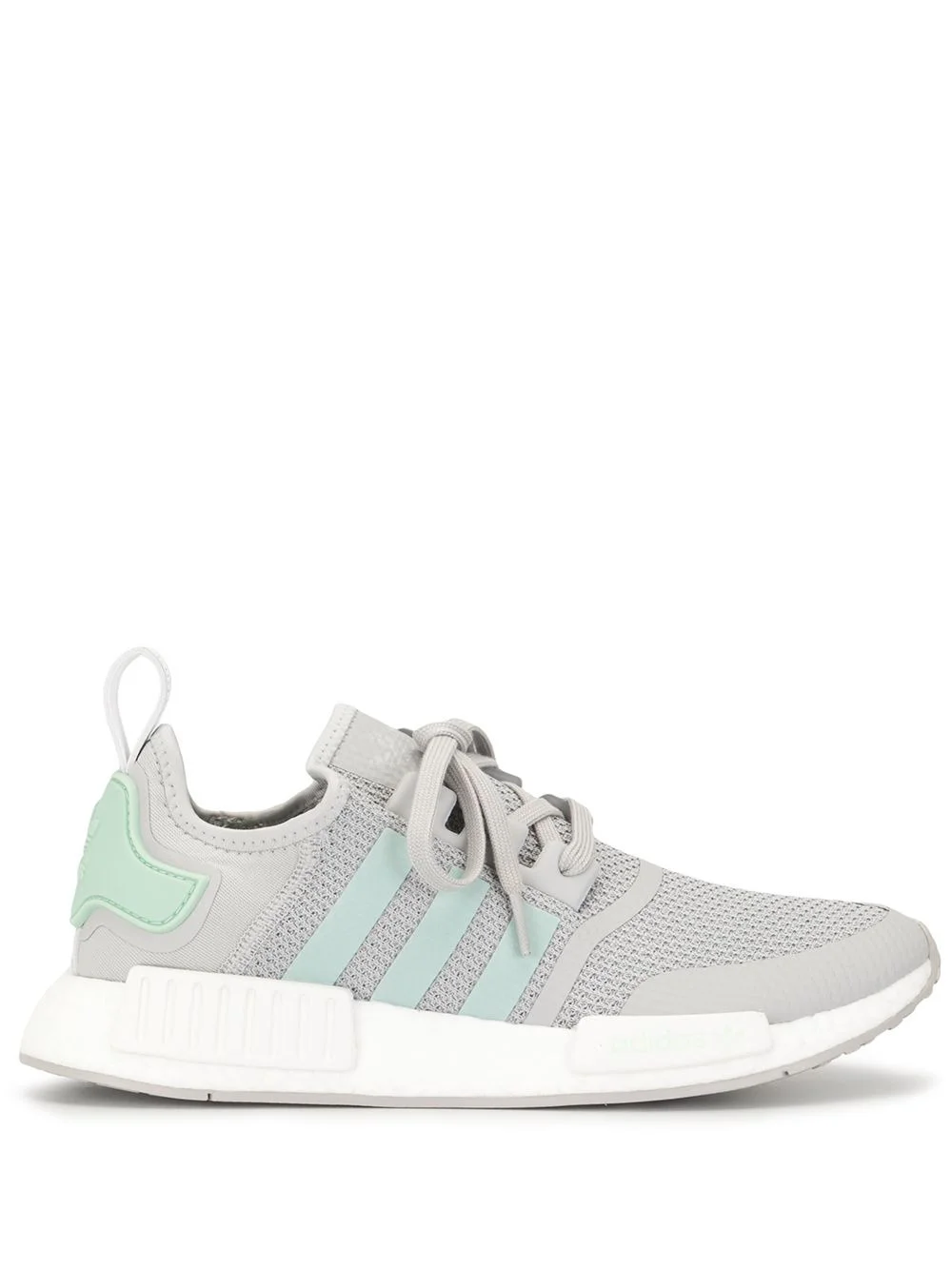 NMD_R1 low-top trainers Highlights - Light grey - Knitted construction - Signature icon stripe - Branded heel counter - Logo patch at the tongue - Pull-tab at the heel - Front lace-up fastening - Round toe and rubber sole Imported Composition Sole: Rubber 100%