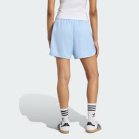Satin shorts with playful 3-Stripes ruffles. The 3-Stripes are a symbol of fashion around the world. And on these shorts, they're more luxurious than ever. Ruffled stripes stand out on silky smooth satin, putting a chic spin on classic sport. Wear them to the city, the festival or wherever you want to show off your style. Details - Loose fit - 100% cotton (organic) - Ruffle details - Imported - Product code: KC8817 - Product color: Clear Sky