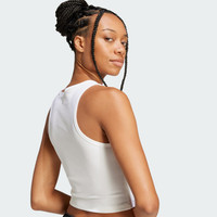 A versatile tank top with a comfortable, flattering fit. Slip into effortless style and comfort with this adidas tank top. The form-fitting, lightweight design is made of rib knit fabric that hugs your body in all the right places. Paired with joggers or jeans, this versatile essential transitions seamlessly from day to night. Details - Slim fit - Ribbed crewneck - 46% cotton, 45% viscose, 9% elastane rib knit - Racerback - Imported - Product code: JC9007 - Product color: White