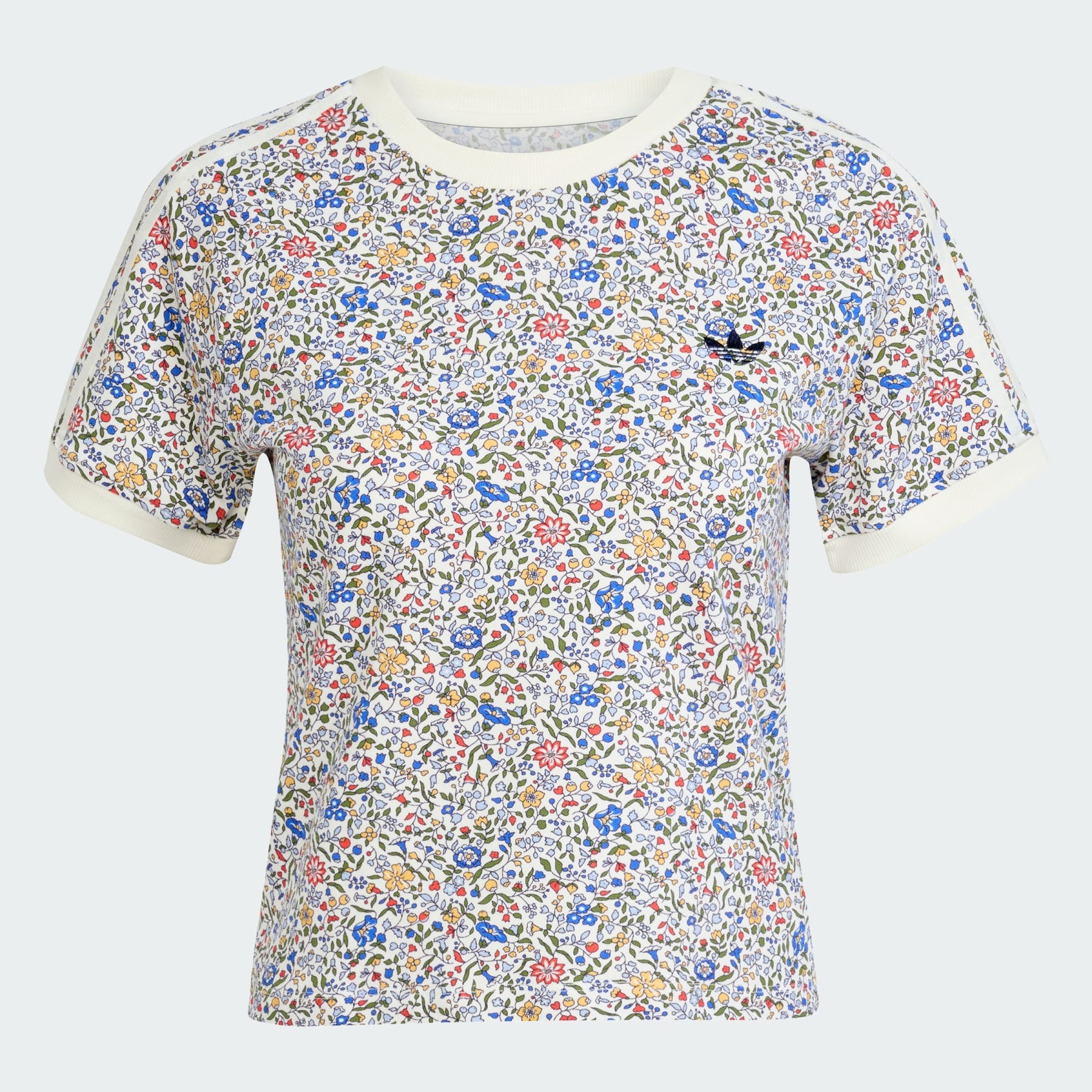An allover print tee from adidas and Liberty London. adidas Originals and Liberty London come together to create a floral collaboration that celebrates iconic style. This t-shirt features a vibrant Liberty London print for a colorful, fresh take on casual style. The soft cotton build and slim fit keep you comfortable and stylish. A small Trefoil on the front adds the adidas touch. Details - Slim fit - 95% cotton, 5% elastane - Allover print - Imported - Product code: JW5199 - Product color: Off White / Semi Lucid Red