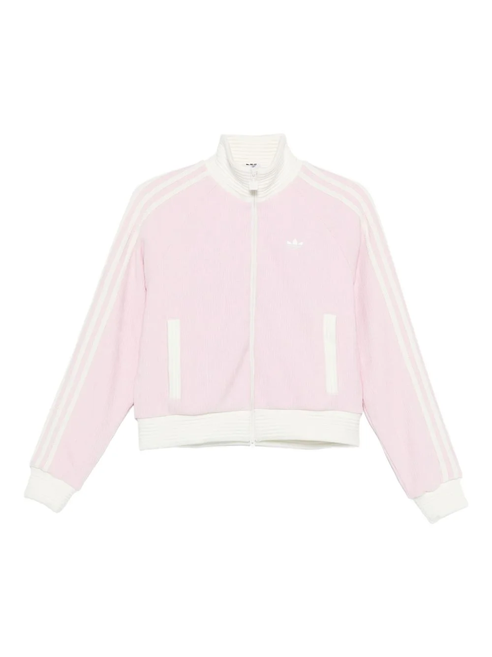 velour zipped sweatshirt Highlights - Light pink - Three-stripe detail - Zip fastening - Ribbed hem - Ribbed cuffs - Logo detail Imported Composition Outer: Recycled Polyester 50%, Cotton 50% Lining: Recycled Polyester 100% SIZE & FIT Model measurements Height 5 ft 10 in(1.78 m) Bust/Chest 33.46 in(85 cm) Hips 36.22 in(92 cm) Waist 23.22 in(59 cm) Washing instructions Machine Wash