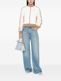 velour zipped sweatshirt Highlights - Off-white - Three stripes on sleeves - Ribbed trims - Zip fastening - Two pockets - Logo detail Imported Composition Outer: Recycled Polyester 50%, Cotton 50% Lining: Recycled Polyester 100% SIZE & FIT Model measurements Height 5 ft 10 in(1.78 m) Bust/Chest 33.46 in(85 cm) Hips 36.22 in(92 cm) Waist 23.22 in(59 cm) Washing instructions Machine Wash