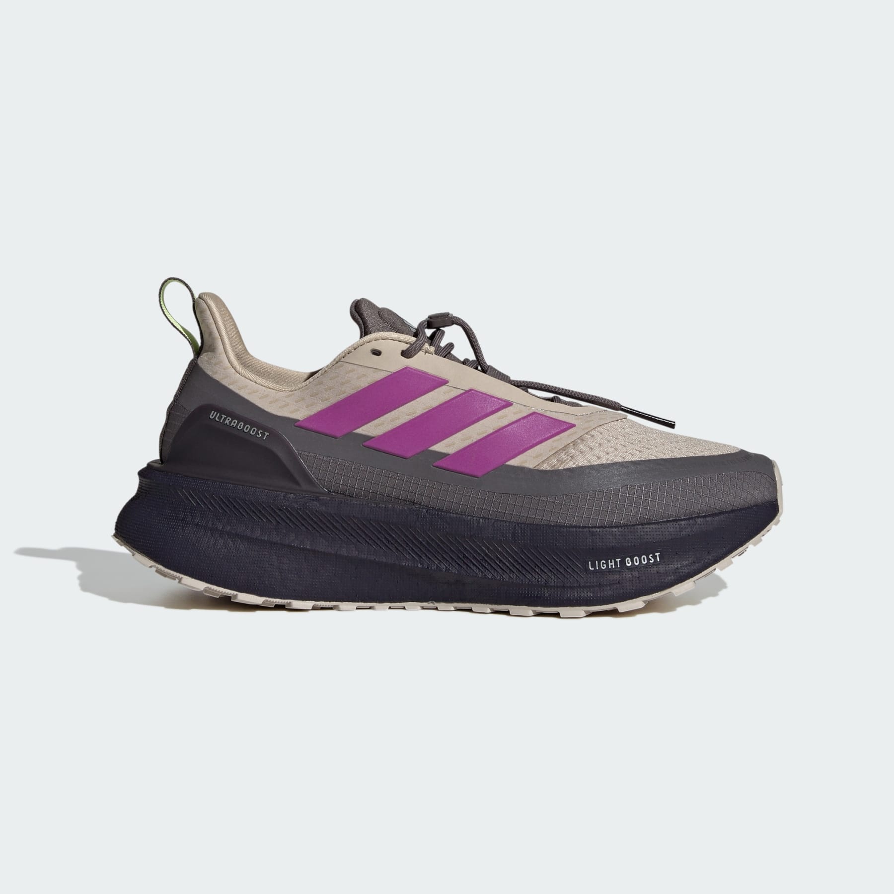 Running shoes with CLIMAWARM to keep you warm and dry so you can focus on the journey. The best way to warm up on a cold day? Go running. As you stride through chilly weather, these adidas running shoes keep your feet dry and warm. CLIMAWARM traps heat and releases sweat for a warm, dry and focused performance, and a water-repellent mesh upper sheds light rain. Of course, it wouldn't be an Ultraboost without the incredible energy return of a Light BOOST midsole. CLIMAWARM has insulating materials that trap warmth for optimal body temperature. Stay dry inside with sweat-wicking fibers that keep skin dry and comfy. Dial up warmth retention with first layer comfort to boost heat. This product features at least 20% recycled materials. By reusing materials that have already been created, we help to reduce waste and our reliance on finite resources and reduce the footprint of the products we make. Details - Regular fit - Lace closure - Textile and synthetic upper - CLIMAWARM - Torsion System - Light BOOST - Continental™ Rubber outsole - Imported - Product code: JQ7306 - Product color: Wonder Beige / Purple Burst / Charcoal