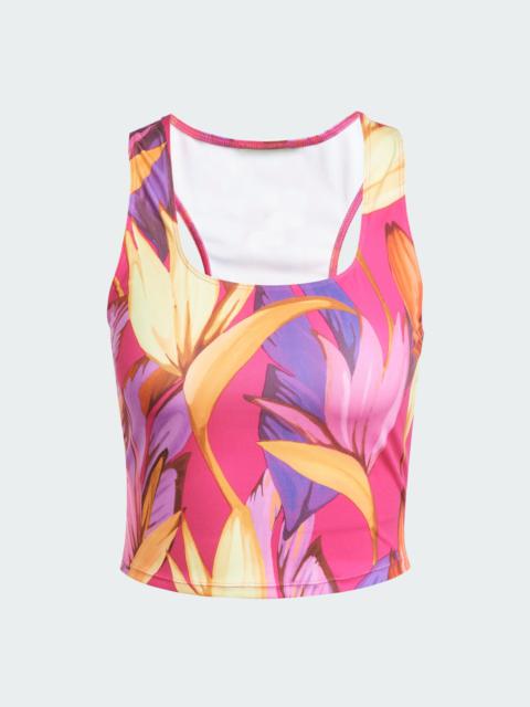 Leggings with CLIMACOOL to keep you cool, dry and ready, made in part with recycled materials. These adidas training leggings bring energy to your workout with a vibrant allover print. Designed in collaboration with FARM Rio, the high-rise tights move with you through every squat, lunge, and stretch. Minimal seams offer a chafe-free fit. CLIMACOOL wicks and disperses sweat for cool, dry and distraction-free performance. CLIMACOOL helps you manage sweat with materials that wick and manage sweat quickly. Its fast-dry fibers give you a fresh-skin feel. This product is made with at least 70% recycled materials. By reusing materials that have already been created, we help to reduce waste and our reliance on finite resources and reduce the footprint of the products we make. Details - Tight fit with high rise - Flat elastic waist - 85% polyester (recycled), 15% elastane - CLIMACOOL - Designed with fewer seams - Sleek feel - Seven-eighths length - FARM Rio allover print - Imported - Product code: JD6310 - Product color: Semi Spark / Shadow Red