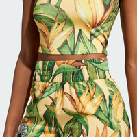 Colorful shorts with CLIMACOOL to keep you cool, dry and ready, made with recycled materials. Bring a bit of desert beauty to your next workout in these adidas training shorts. Created with FARM Rio, they feature an allover print that combines their signature tropical elements with animal and ikat patterns. The woven fabric and loose fit allow complete freedom of movement as you train. CLIMACOOL wicks and disperses sweat for cool, dry and distraction-free performance. CLIMACOOL helps you manage sweat with materials that wick and manage sweat quickly. Its fast-dry fibers give you a fresh-skin feel. This product is made with 100% recycled materials. By reusing materials that have already been created, we help to reduce waste and our reliance on finite resources and reduce the footprint of the products we make. Details - Loose fit with mid rise - Elastic waist with drawcord - 100% polyester (recycled) - CLIMACOOL - Moisture-wicking - Allover FARM Rio graphic - Imported - Product code: JD6278 - Product color: Semi Spark / Bold Gold / Semi Flash Green